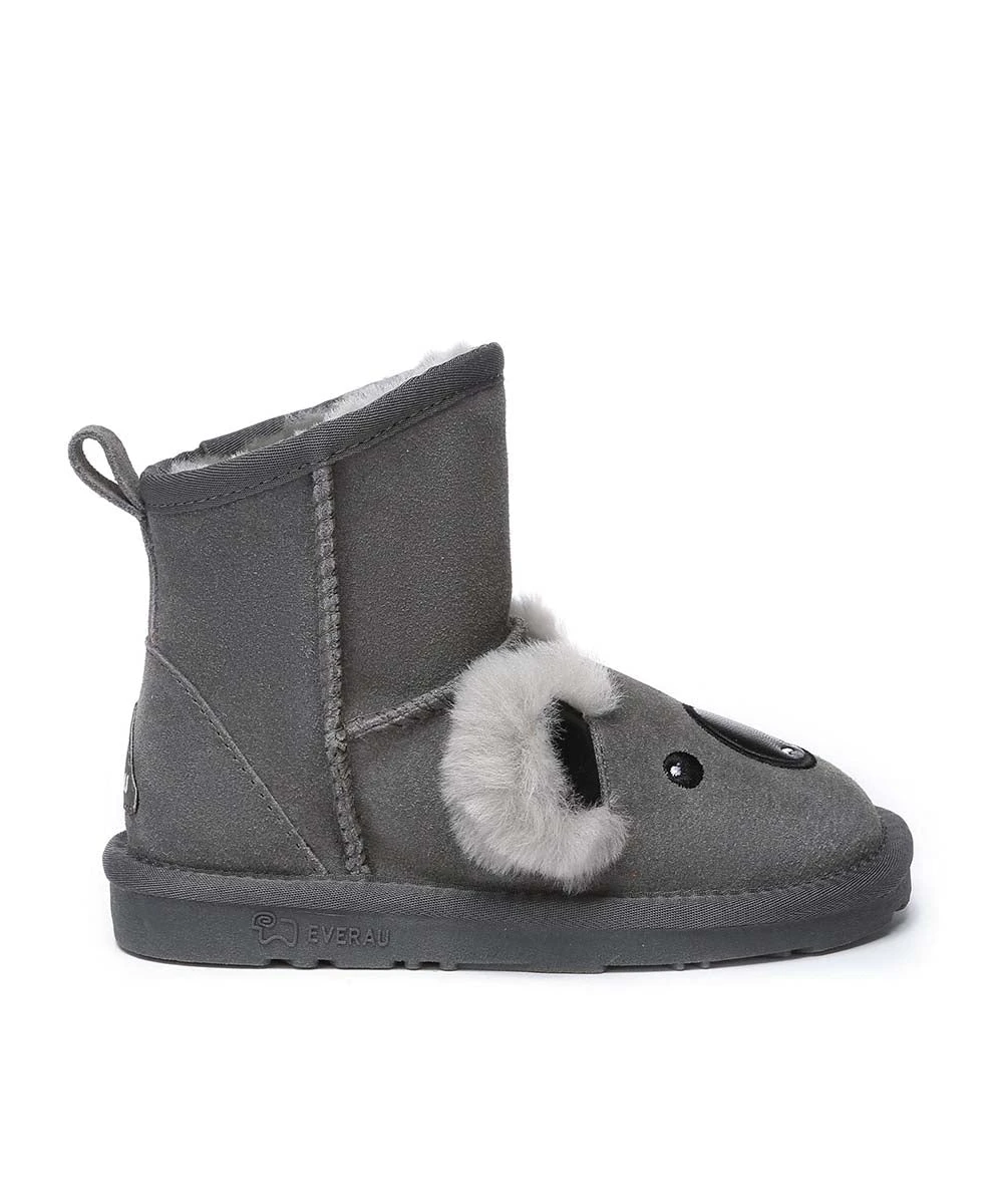 Presenting the Koala Kids Boots, the ideal selection to ensure your little ones stay snug and fashionable. Constructed with sheepskin wool and cow suede, these boots are created to offer utmost comfort and warmth for your child’s feet. Boasting a timeless design with charming koala accents, the slip-on style allows for easy wear, while the adaptable hook-and-loop closure guarantees a secure fit. Choose these delightful and practical sheepskin boots for your little darlings and let them revel in both comfort and style.