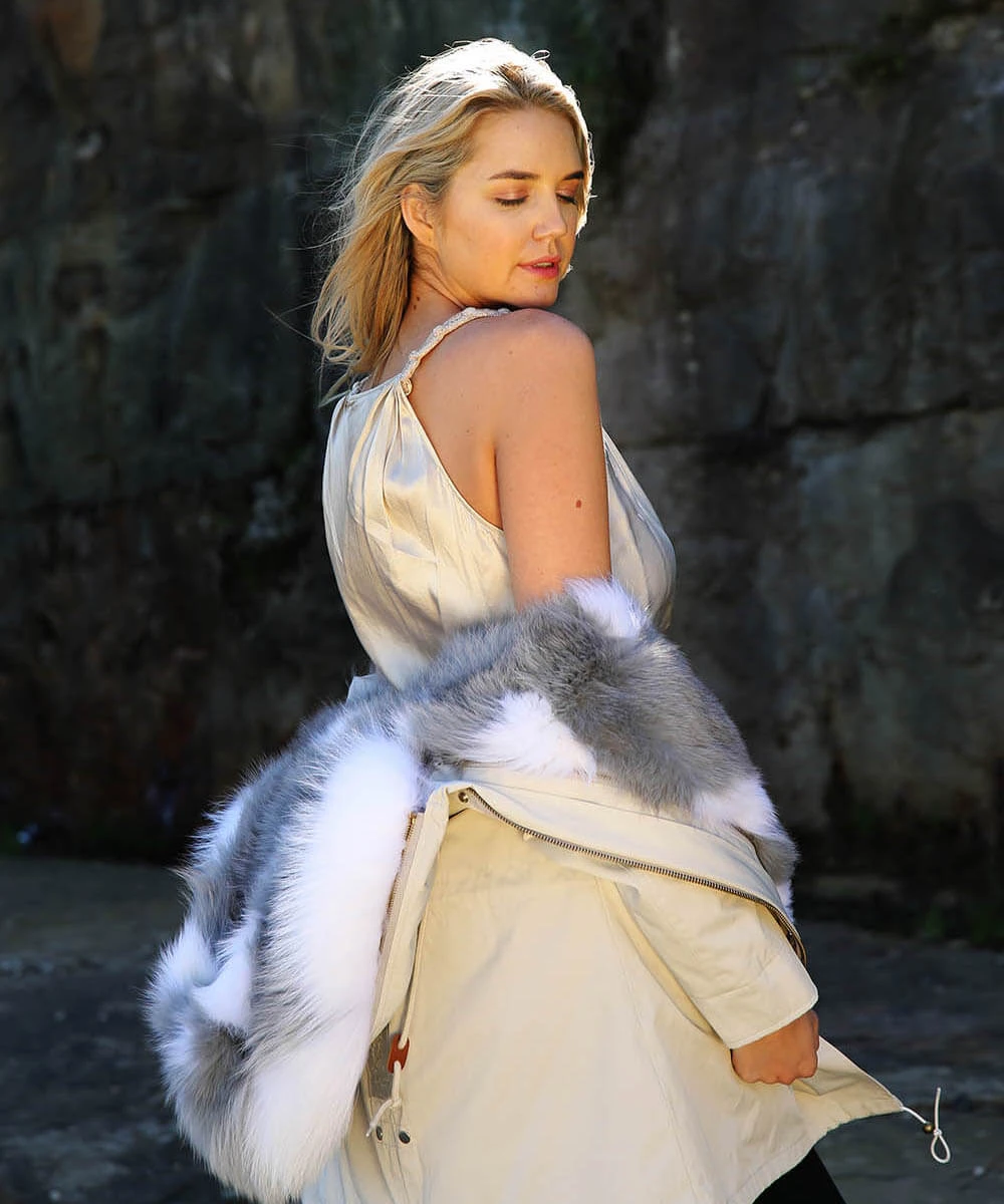 The Parka Jackets have made their mark into the fashion world.Made with a removable inner fox fur lining, it can also be worn as a sleeveless fur vest. The raccoon fur collar that matches the inner garment is perfect to keep warm during cold temperatures.This luxurious hooded parka features metal button cuffs, a zip and press stud fastening, flap pockets and elasticized drawstring waist.