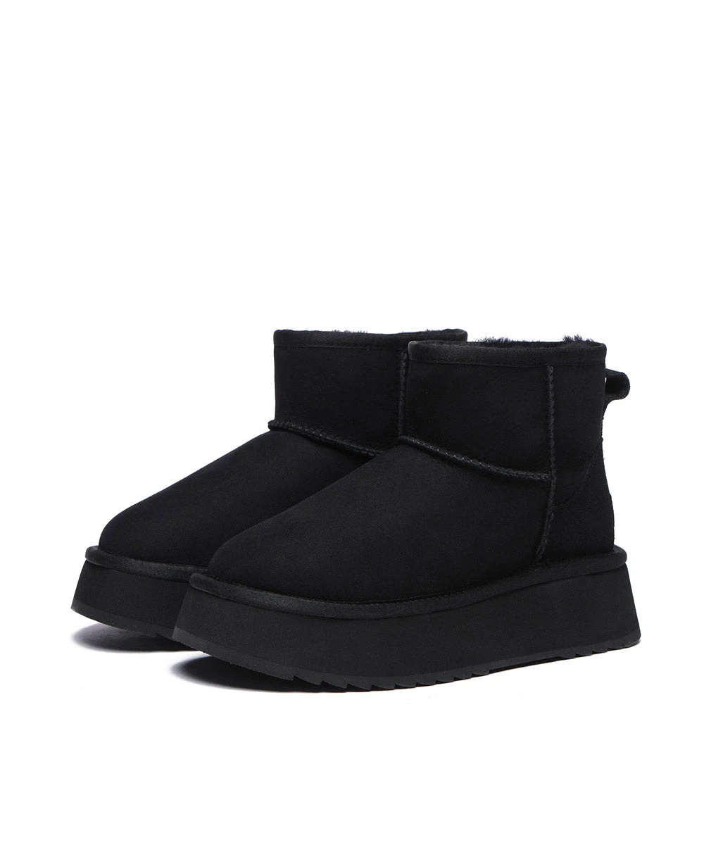 The Classic Mini Platform UGG Boots are going to have you turning heads the moment you leave your home. A style that will go with anything, paired with a cute matching skirt or your favourite jeans, you will look effortlessly fresh. Made from an A-grade premium suede and sheepskin but in a funky design, you can’t go wrong with this new boots. A water-resistant coating has been applied to the surface of the shoes which ensures your boots remain looking great for years to come.